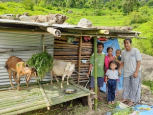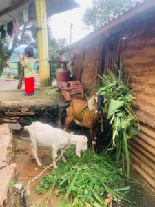 Um Bauernfamilien zu unterstützen, haben wir unser Programm „Animal Husbandry“ gestartet. In Nuwakot durften wir zwei Familien besuchen, die auf einem kleinen Grundstück  ihre Hütten errichtet haben und dem ansässigen Bauern bei der Feldarbeit helfen. Gemeinsam haben wir ihnen beim Aufbau eines Ziegenstalls geholfen.