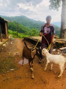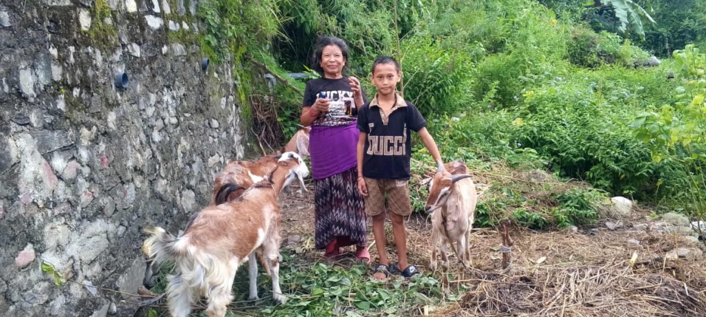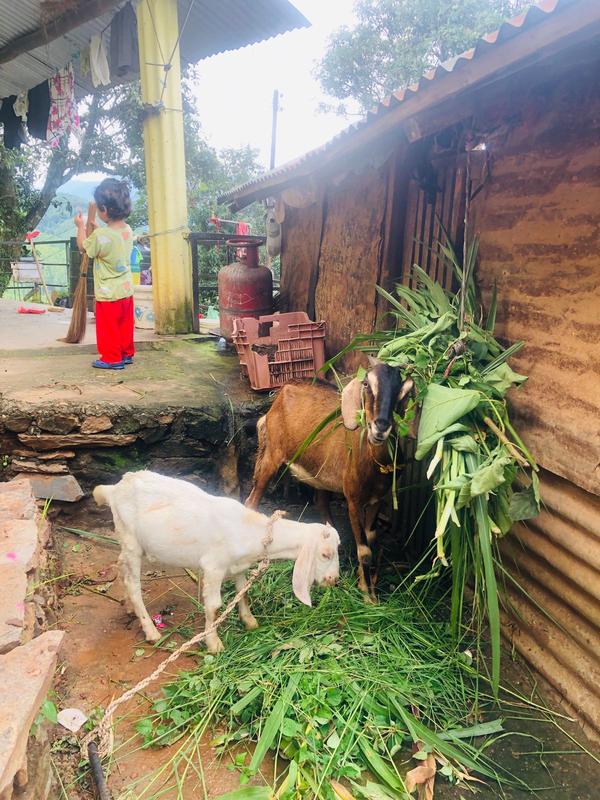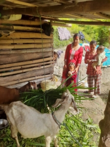 Zwei Familien erhielten je ein Ziegenpaar – ein wichtiger Schritt zur Selbständigkeit.  Das fruchtbare Land rund um Nuwakot bietet beste Bedingungen für die Tiere und inzwischen gibt es sogar schon süßen Nachwuchs.